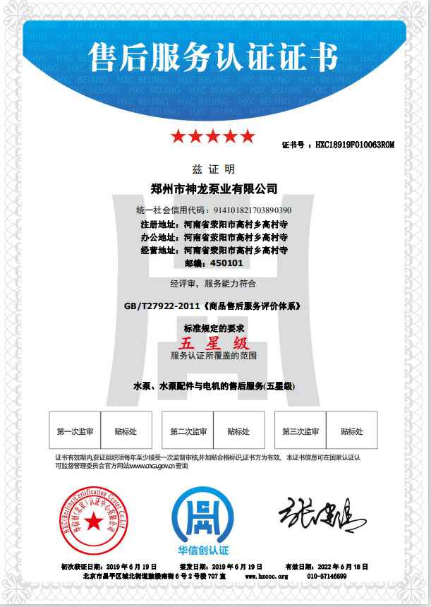 祝贺开云官方端网站登录入口-开云(中国)获得水泵、水泵配件与电机的五星级售后服务认证。